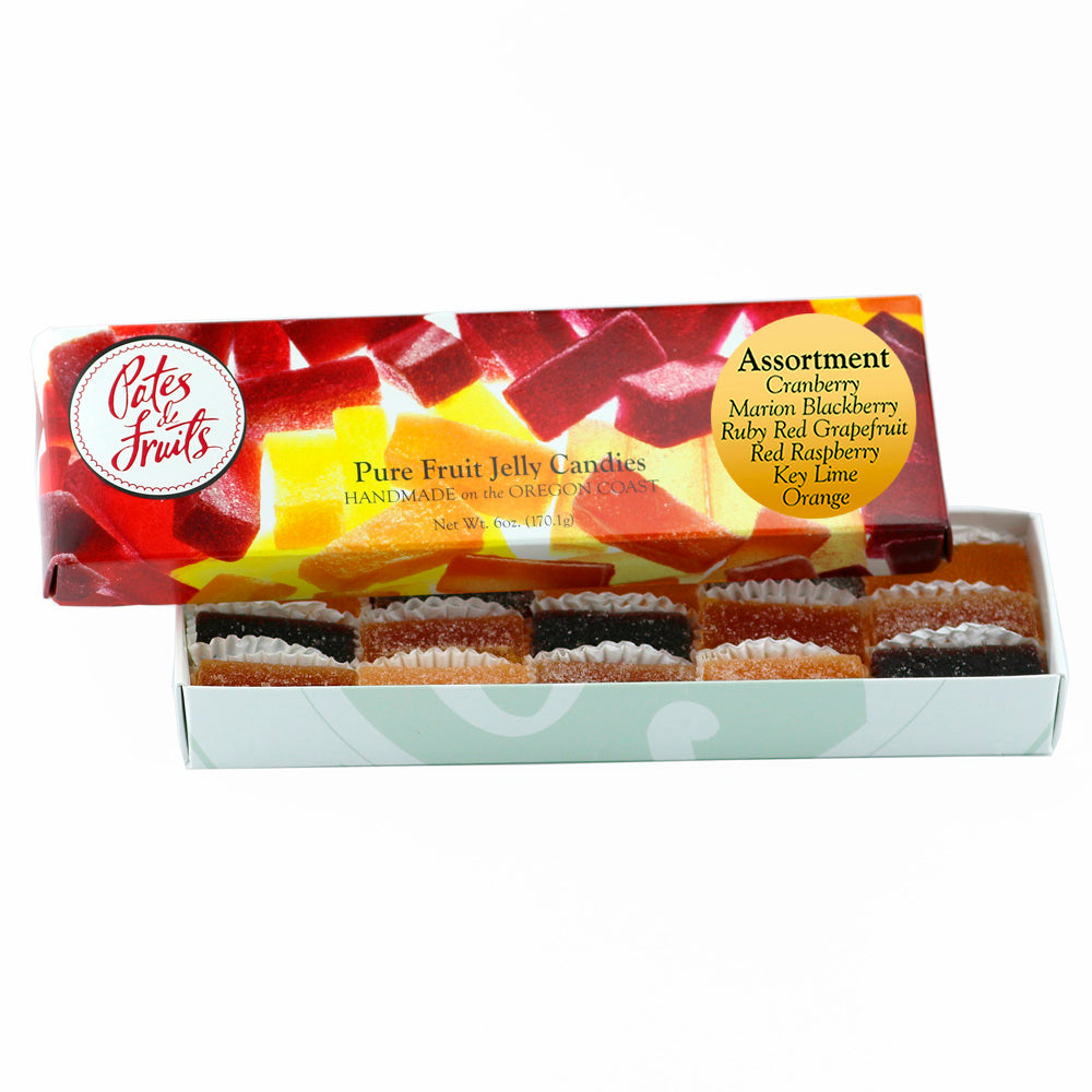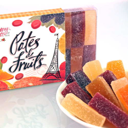 You wouldn’t add cornstarch to a glass of your favorite fruit juice — so why would you want it in your favorite fruit candy? We never use starch or gelatin to thicken these fruit jellies, and that’s what sets pâtes de fruits apart from ordinary gummy candies.