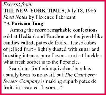These jewel-like French confections have been celebrated for generations, and even The New York Times praised Cranberry Sweets’ pâtes de fruits as “superb”, comparing them to the classic Parisian candies found at renowned shops like Hédiard and Fauchon. At Cranberry Sweets, we’ve perfected the craft using a method that’s as slow as it is rewarding.